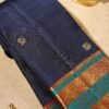 This is a graceful lime green monotone Kanjivaram silk saree, woven with dainty golden bindhi buttas across the body that shimmer elegantly with every drape. The border is adorned with intricate zari artistry, showcasing motifs of elephants and traditional designs that exude richness and cultural heritage. The bright lime green base, paired with the opulent golden zari, makes this saree a radiant choice for festive occasions, temple visits, and grand celebrations.