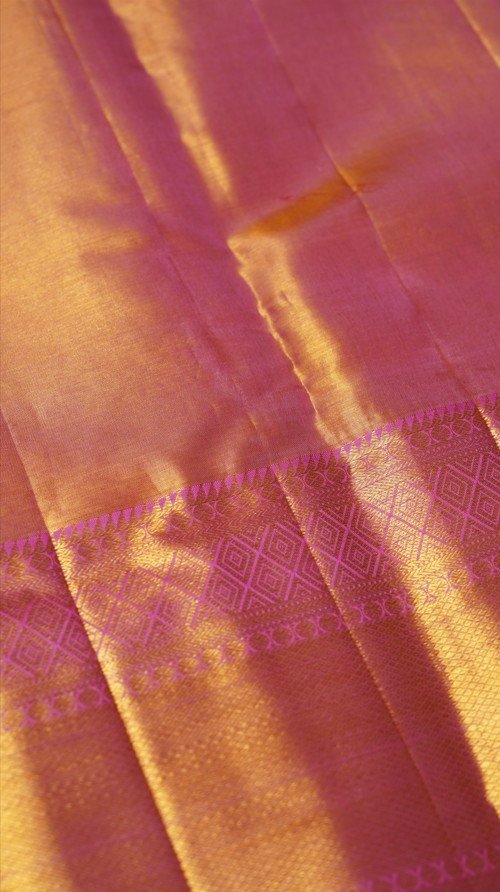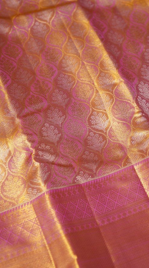 An epitome of grace and grandeur, this pink monotone tissue Kanjivaram saree beautifully blends traditional craftsmanship with contemporary elegance. The body features intricate floral patterns woven delicately, echoing the luxurious charm of Banarasi weaves and lending a rich, textured depth to the drape. The tissue fabric imparts a soft, luminous sheen, ensuring a radiant glow under any light. Completing its magnificence is the grand zari pallu, resplendent with traditional motifs that speak of regal heritage. Lightweight yet luxurious, this saree is a perfect choice for weddings, festive occasions, and celebrations where timeless elegance is desired.