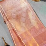 This saree is a masterpiece of light and luxury. Its body, in a unique and elegant light lavender, is woven with shimmering gold tissue, creating a captivating and luminous effect. The entire saree is adorned with intricate diamond patterns, giving it a rich texture. The stunning border is a work of art, featuring finely detailed motifs of elephants and peacocks, symbolizing strength and grace. The grand pallu, resplendent in a rich gold weave, completes this luxurious Kanjivaram, making it a truly grand and beautiful choice for any special occasion.